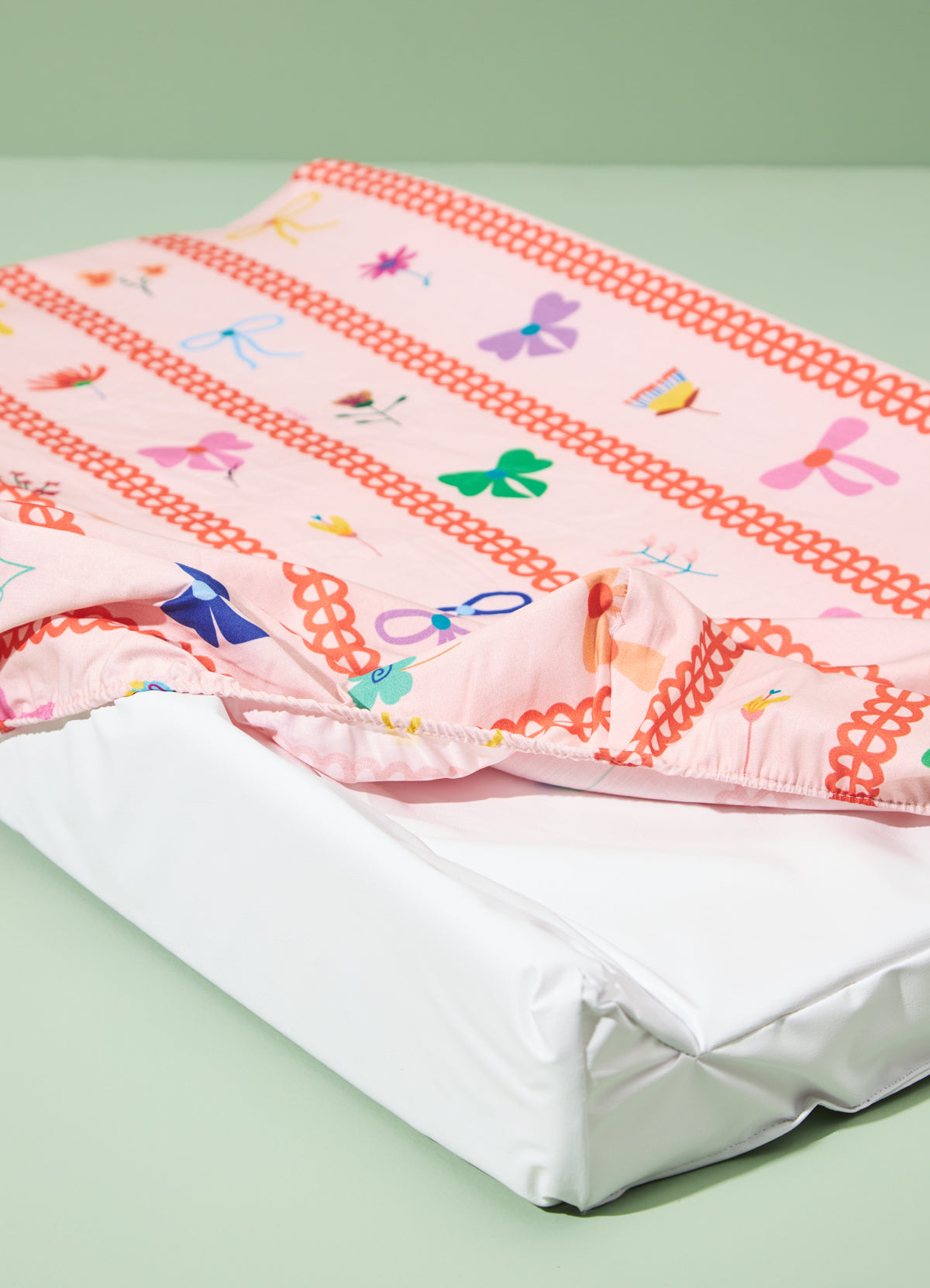 O Trocador Americano Laços De Amizade da MOOUI foi desenvolvido para tornar a troca de fraldas mais prática, segura e colorida. Confeccionado com espuma D20 revestida de napa impermeável e capa removível em algodão 230 fios com elástico.