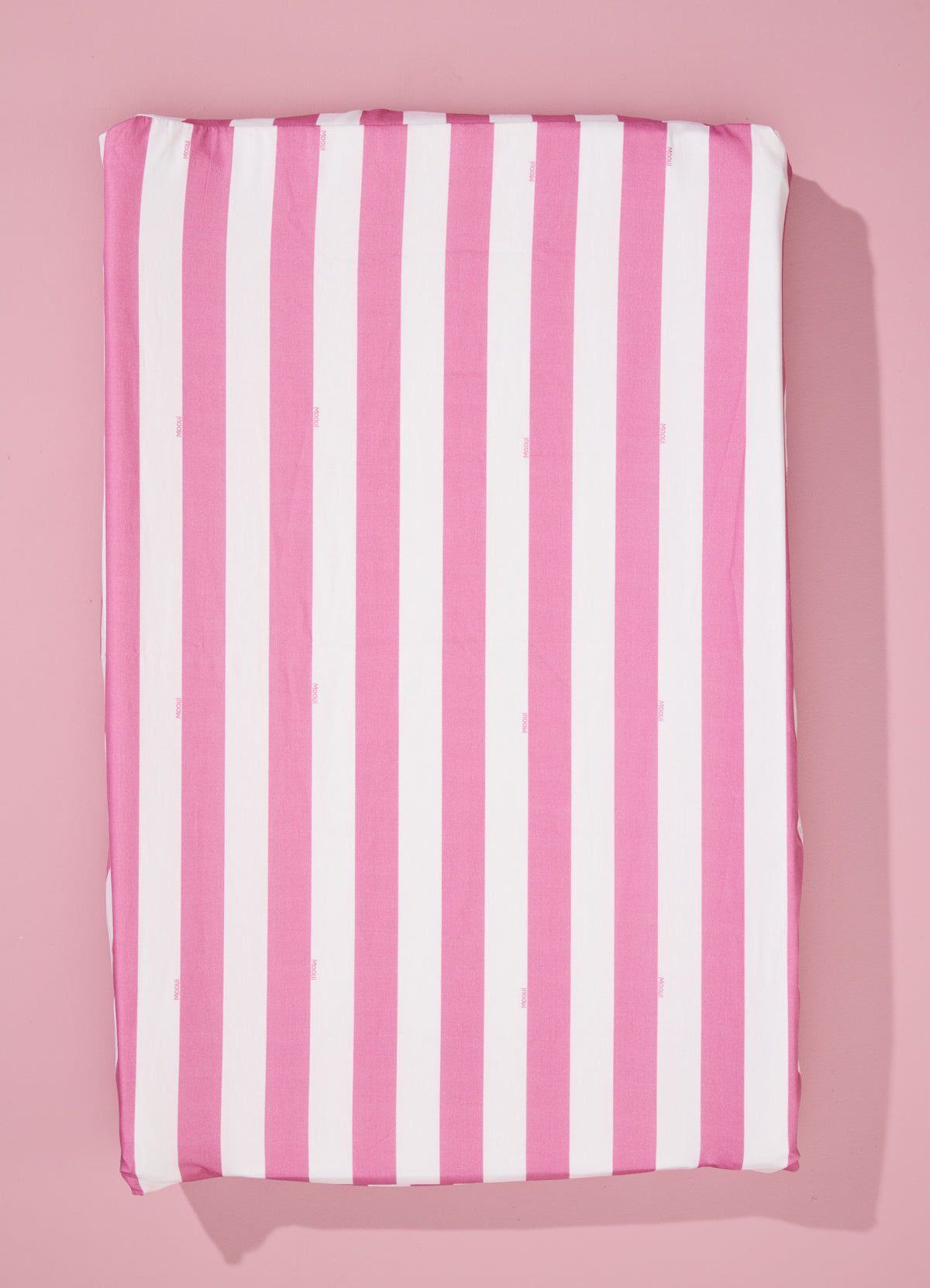 O Trocador Americano Listrado Azaleia da MOOUI foi desenvolvido para tornar a troca de fraldas mais prática, segura e colorida. Confeccionado com espuma D20 revestida de napa impermeável e capa removível em algodão 230 fios com elástico.
