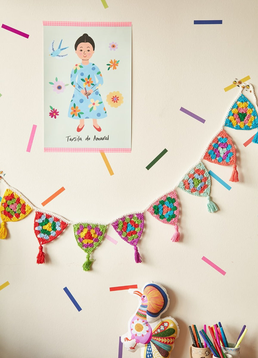 O Varal Bandeirinha de Crochet Color, exclusivo MOOUI, foi desenvolvido para dar mais estilo para a sua decoração e foi cuidadosamente produzido à mão pelas artesãs da Associação Mãos Estendidas - AME no Projeto Oficina de Crochê.