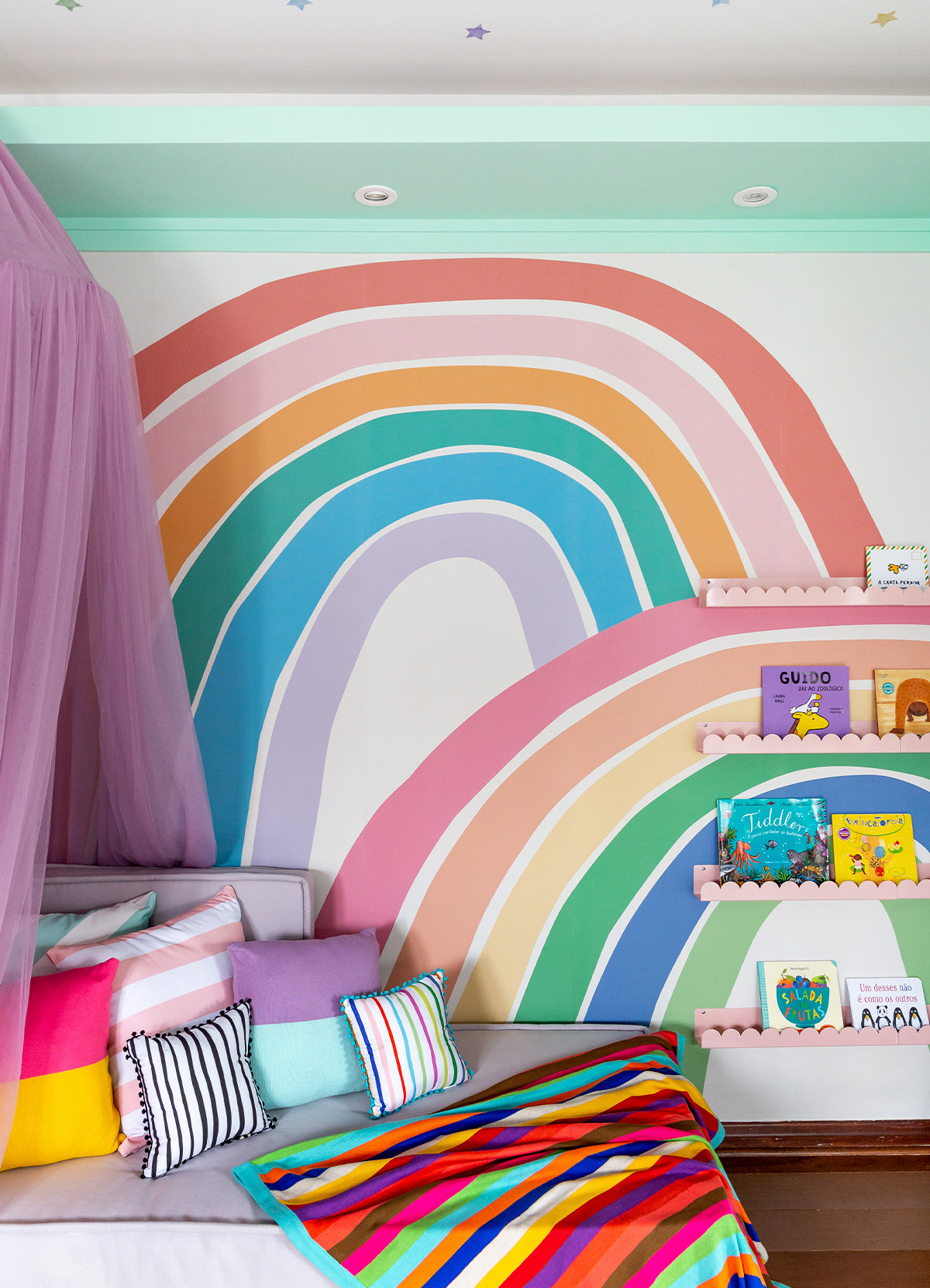O Papel de Parede Além do Arco-íris Suave é como um portal da magia: permite que as cores, aventuras e o carinho invadam o quartinho infantil com alegria e encanto. Além de ser um item que transforma a decoração, nosso papel de parede infantil é de base vinílica e impressão de alta definição, para que você tenha um item de muita qualidade para decorar o quarto infantil. O acabamento é fosco e a textura suave, substituindo pinturas com tinta de forma mais prática e durável. E a junção das faixas não é sobreposta, mas alinhada lado a lado. Consulte a disponibilidade de estoque a pronta entrega.