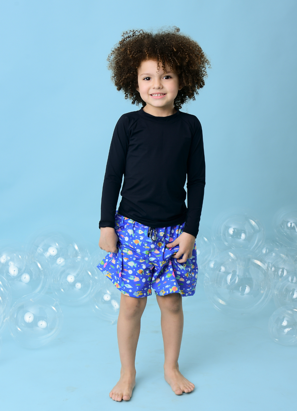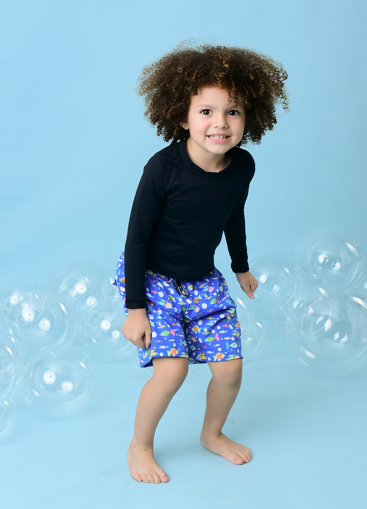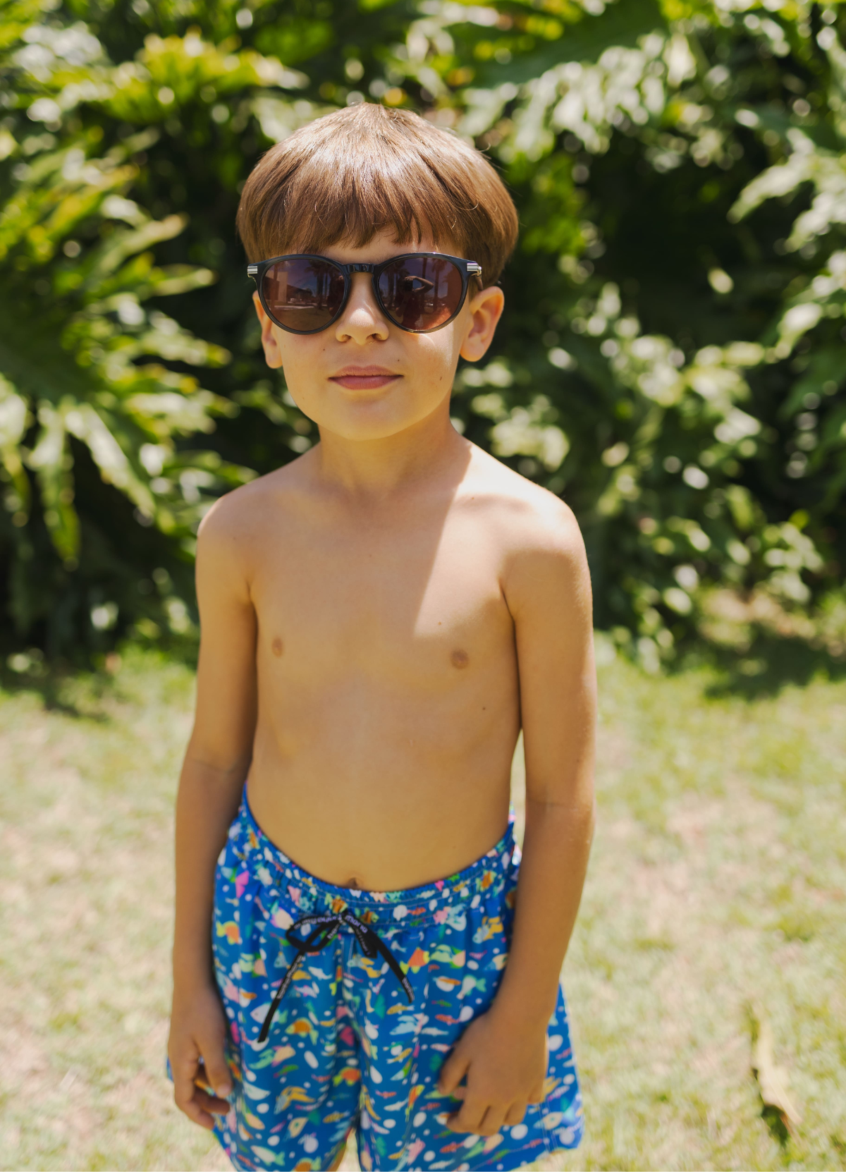 A Bermuda Resort Peixinhos do Oceano MOOUI é ideal para acompanhar as aventuras das crianças com muito conforto. Produzida em poliéster com elastano e forro em poliamida, tem proteção UV50+, secagem rápida e é respirável. Com a estampa alegre Peixinhos do Oceano, garante estilo e praticidade para brincar dentro e fora da água.