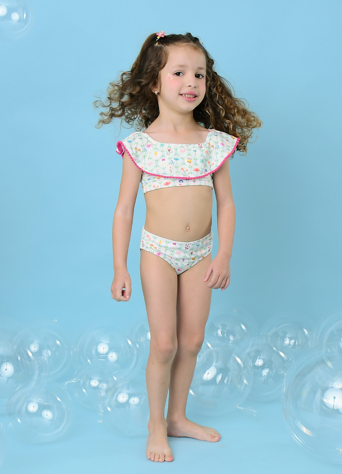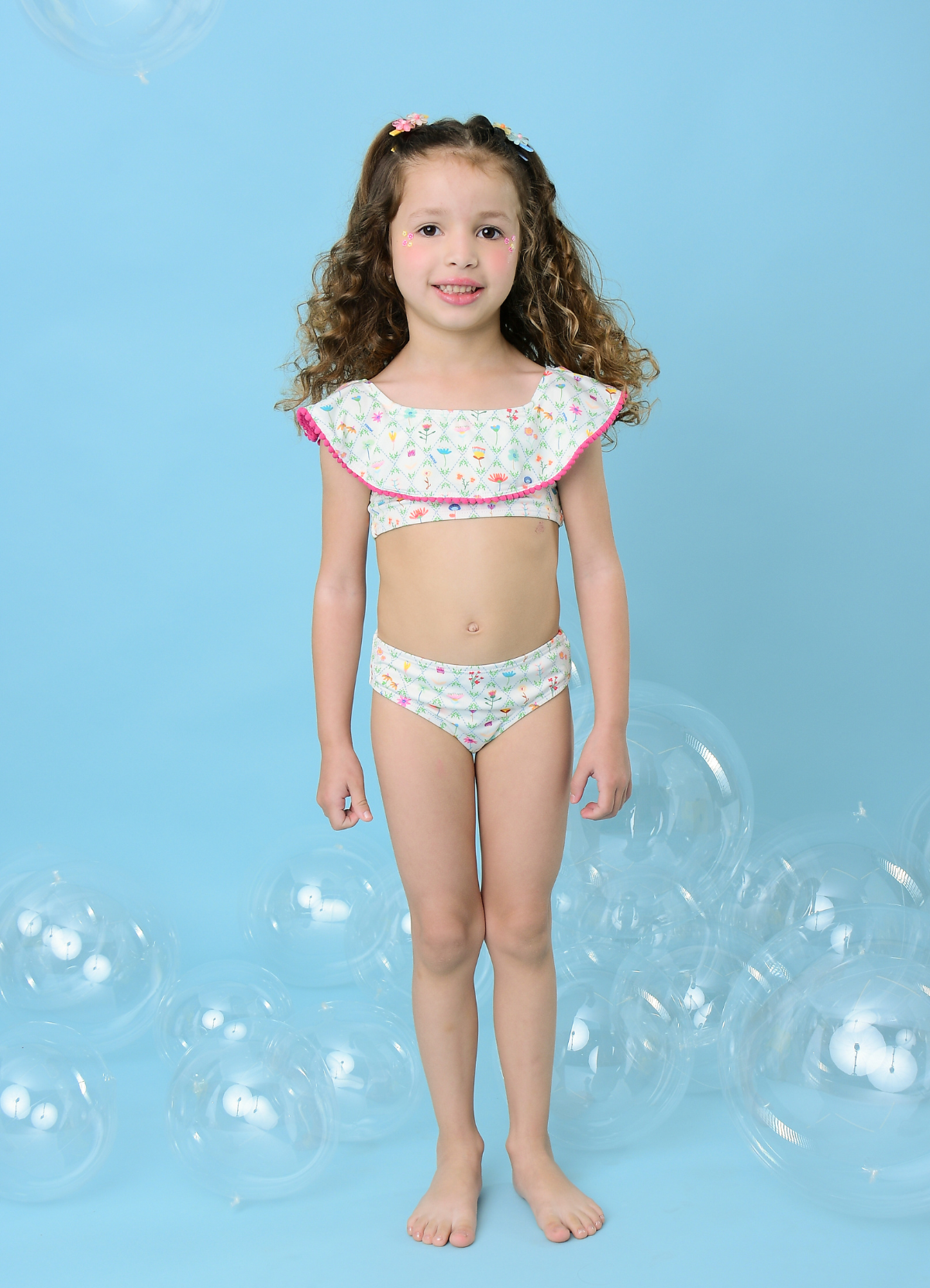 O Biquíni Babado Floral Casa de Campo MOOUI combina charme e proteção para as pequenas curtirem os dias de sol. Com tecido tecnológico de secagem rápida, proteção UV FPS50+ e modelagem confortável, a peça conta com babadinhos delicados que tornam o look ainda mais especial. Forrado em poliamida, garante bem-estar e liberdade para brincar.