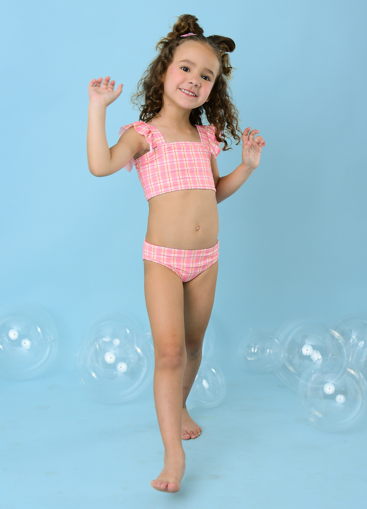 O Biquíni Julie Xadrez Jardim MOOUI traz estilo e praticidade para os dias de sol. Confeccionado em tecido tecnológico de secagem rápida com proteção UV FPS50+, garante conforto e liberdade de movimento. O forro em poliamida assegura maciez e segurança, enquanto a estampa exclusiva Xadrez Jardim adiciona delicadeza ao visual das pequenas.