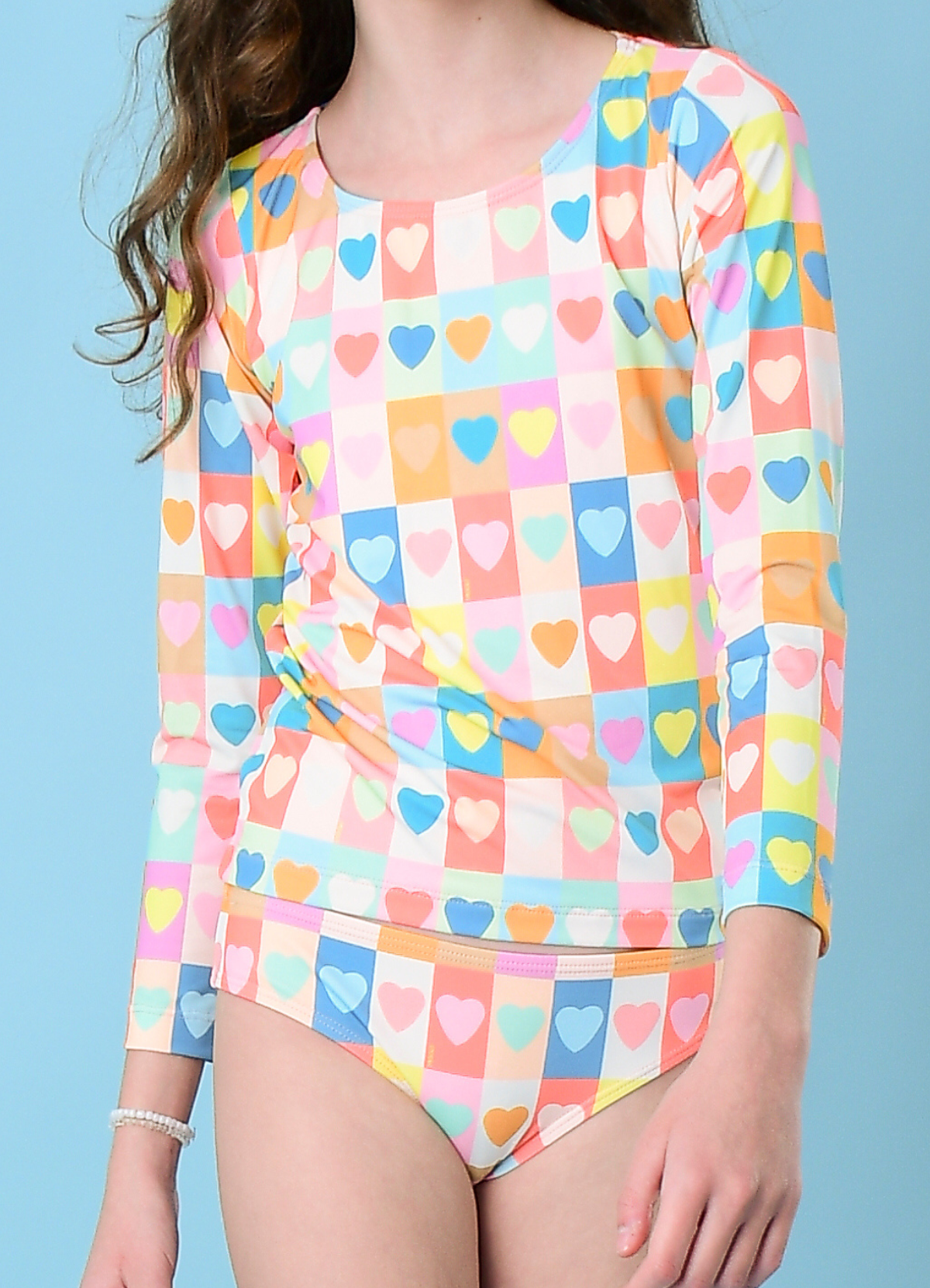 O Biquíni Manga Longa Coração Emoldurado MOOUI oferece máxima proteção solar e conforto para brincadeiras ao ar livre. Produzido em tecido tecnológico com FPS50+ e secagem rápida, possui modelagem prática com mangas longas que protegem ainda mais a pele. A estampa exclusiva completa o visual com delicadeza e estilo.