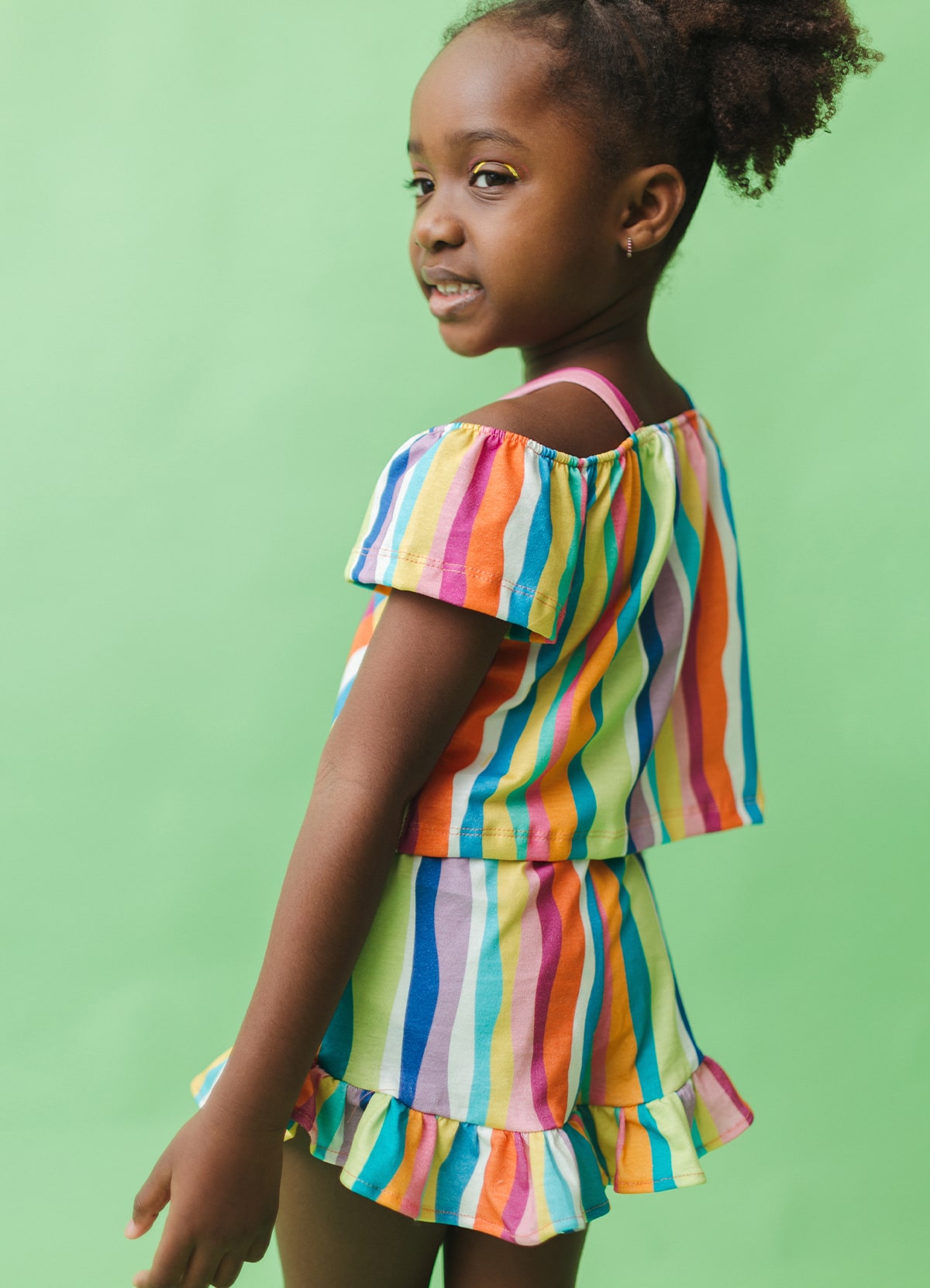 A Blusa Olha a Onda é uma peça charmosa e versátil para o guarda-roupa infantil. Com um comprimento curto e design no estilo bata, ela oferece um caimento leve e confortável. A junção das alcinhas com a manga de babado adicionam um toque de elegância e movimento, tornando a blusa perfeita para dias quentes e ocasiões descontraídas. A estampa listrada inspirada no mar traz um visual fresco e alegre, ideal para criar looks estilosos e divertidos. Feita em tecido leve e respirável, a blusa garante conforto durante todo o dia.