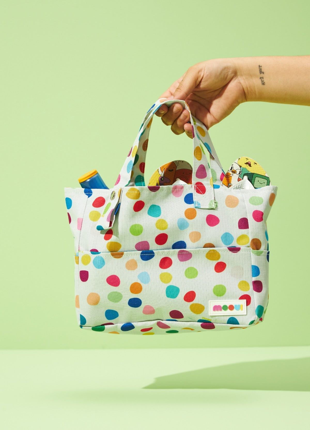 A Bolsa de Praia Infantil Piscina de Bolinhas tem estampa exclusiva Mooui e foi desenvolvida para as crianças carregarem suas coisas para praia ou piscina. Feita em tecido impermeável e resistente, ela possui bolsos externos para os pequenos colocarem o que quiserem, desde conchinhas até seus chinelos. Ela também possui 2 alças externas com botões de pressão que são muito funcionais e versáteis, permitindo que as crianças pendurem os mais variados itens. Apesar de ter sido desenvolvida para as crianças, é uma bolsa que serve muito bem aos adultos que gostam de carregar poucas coisas também. A estampa é alegre e moderna e dá ainda mais estilo à peça.