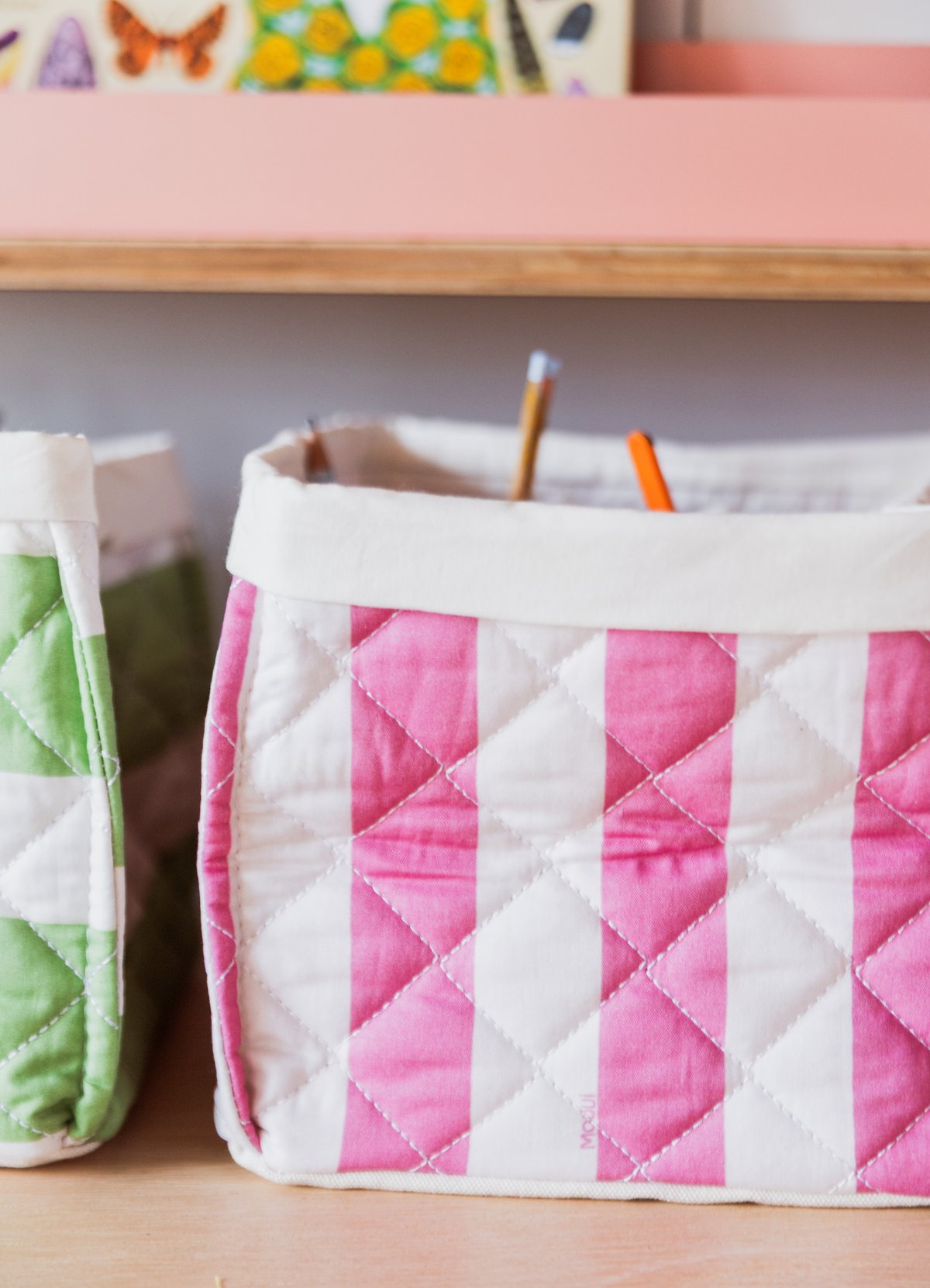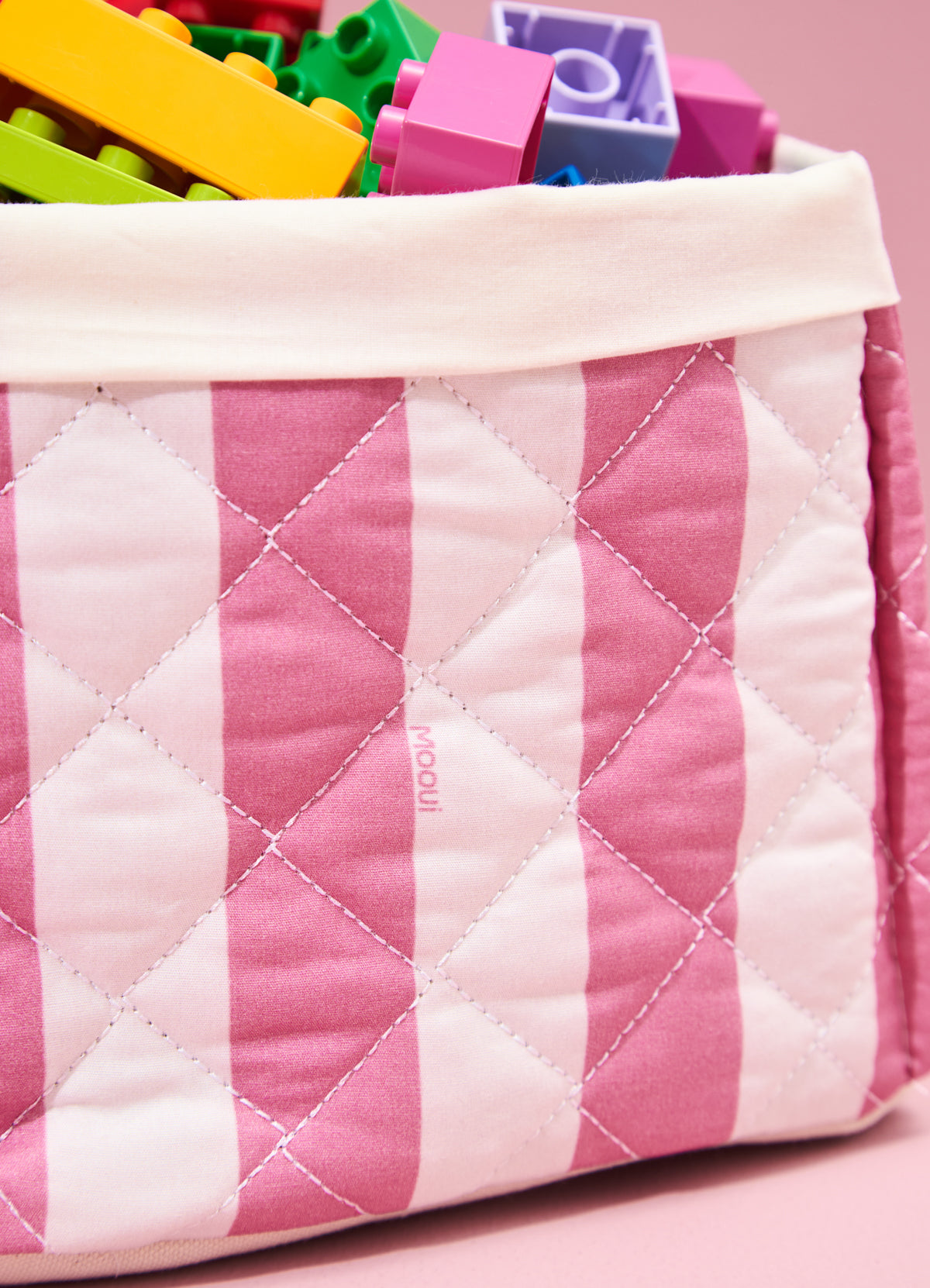 A Caixa Organizadora Média Listrado Azaleia da MOOUI é a solução perfeita para organizar com charme o quarto infantil. Com tamanho ideal para organizar pequenos itens, brinquedos ou acessórios, traz alegria e cor ao ambiente com suas estampas exclusivas.