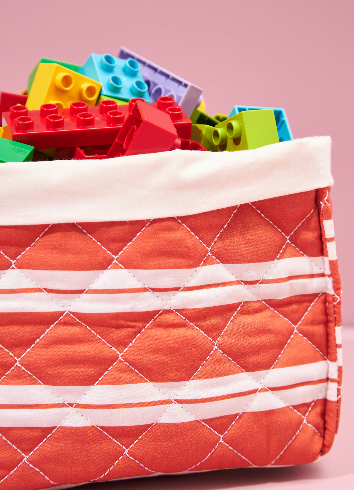 A Caixa Organizadora Média Listrado Carmim da MOOUI é a solução perfeita para organizar com charme o quarto infantil. Com tamanho ideal para organizar pequenos itens, brinquedos ou acessórios, traz alegria e cor ao ambiente com suas estampas exclusivas.