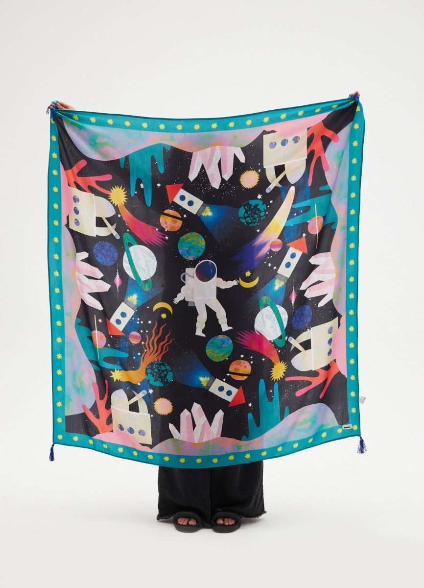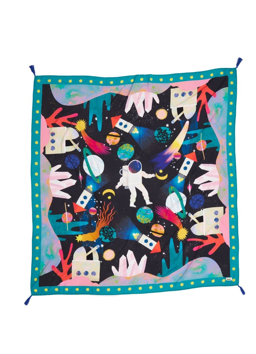 A Canga de Praia Viagem ao Espaço tem estampa exclusiva Mooui e vai te encantar. Feita em viscose com toque macio e acetinado, ela é leve, ocupa pouco espaço na bolsa e fará toda a diferença no seu look de verão. Possui tassel nas quinas, o que deixa ela ainda mais linda e atual. Além de servir como canga, sua versatilidade permite que você a use como pareô, transformando o produto em roupa.