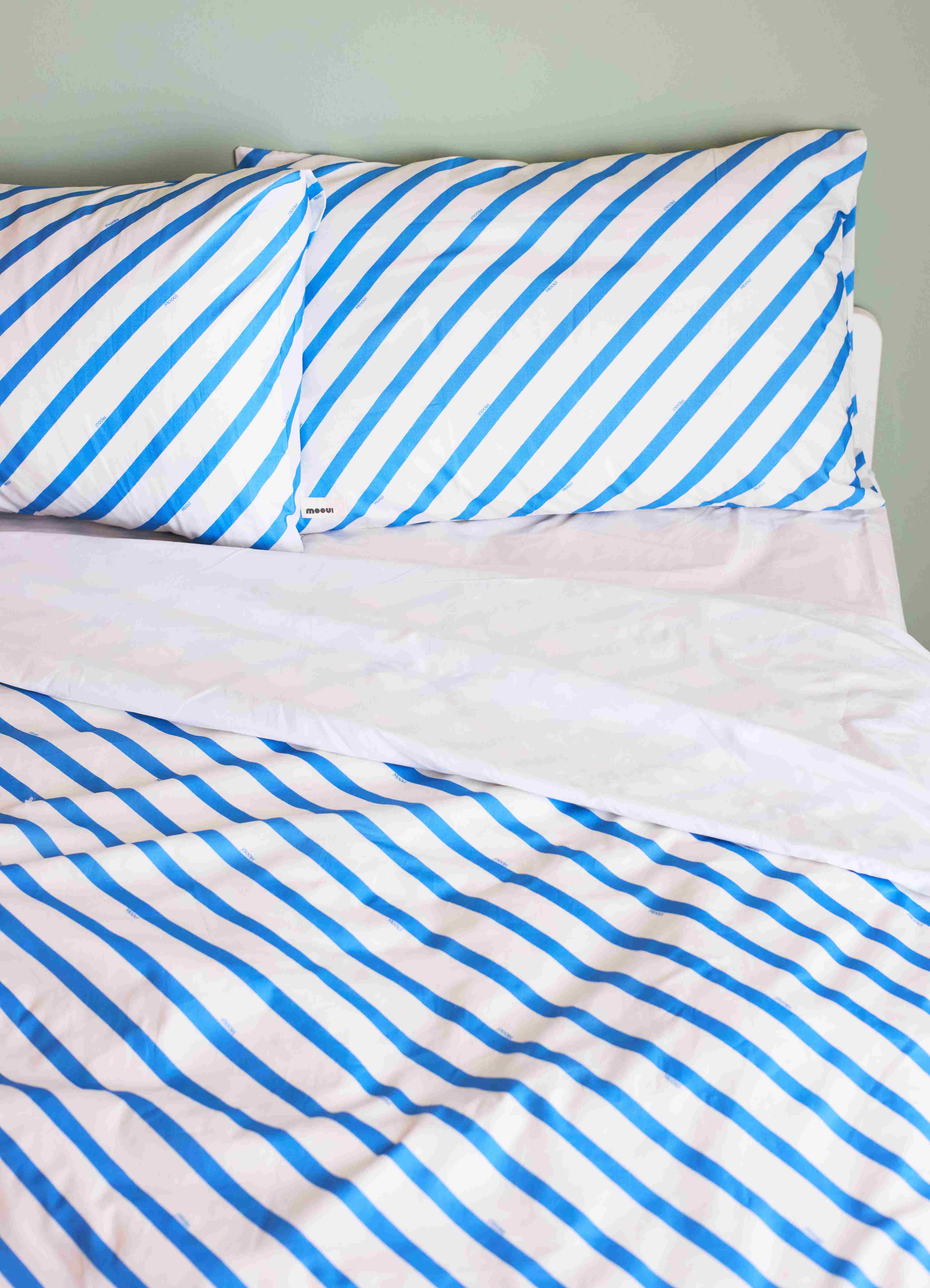 A Capa de Edredom Adulto Listrado Anil da MOOUI traz estampas exclusivas e sofisticação para o quarto. Confeccionada em 100% algodão acetinado 230 fios, possui abertura inferior com fechamento em botões para fácil colocação e remoção.
