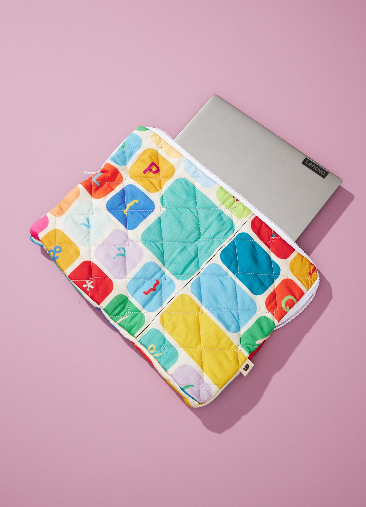 A Capa de Notebook Máquina De Escrever é daqueles itens que fazem toda diferença na organização da sua bolsa ou mochila. A capa para notebook é perfeita e necessária para o transporte do seu notebook de forma segura. Feito em tecido de algodão matelassado e fechamento em zíper, ele acomoda o computador de maneira segura e com muito estilo.