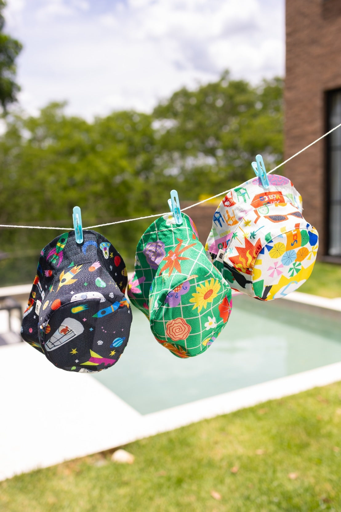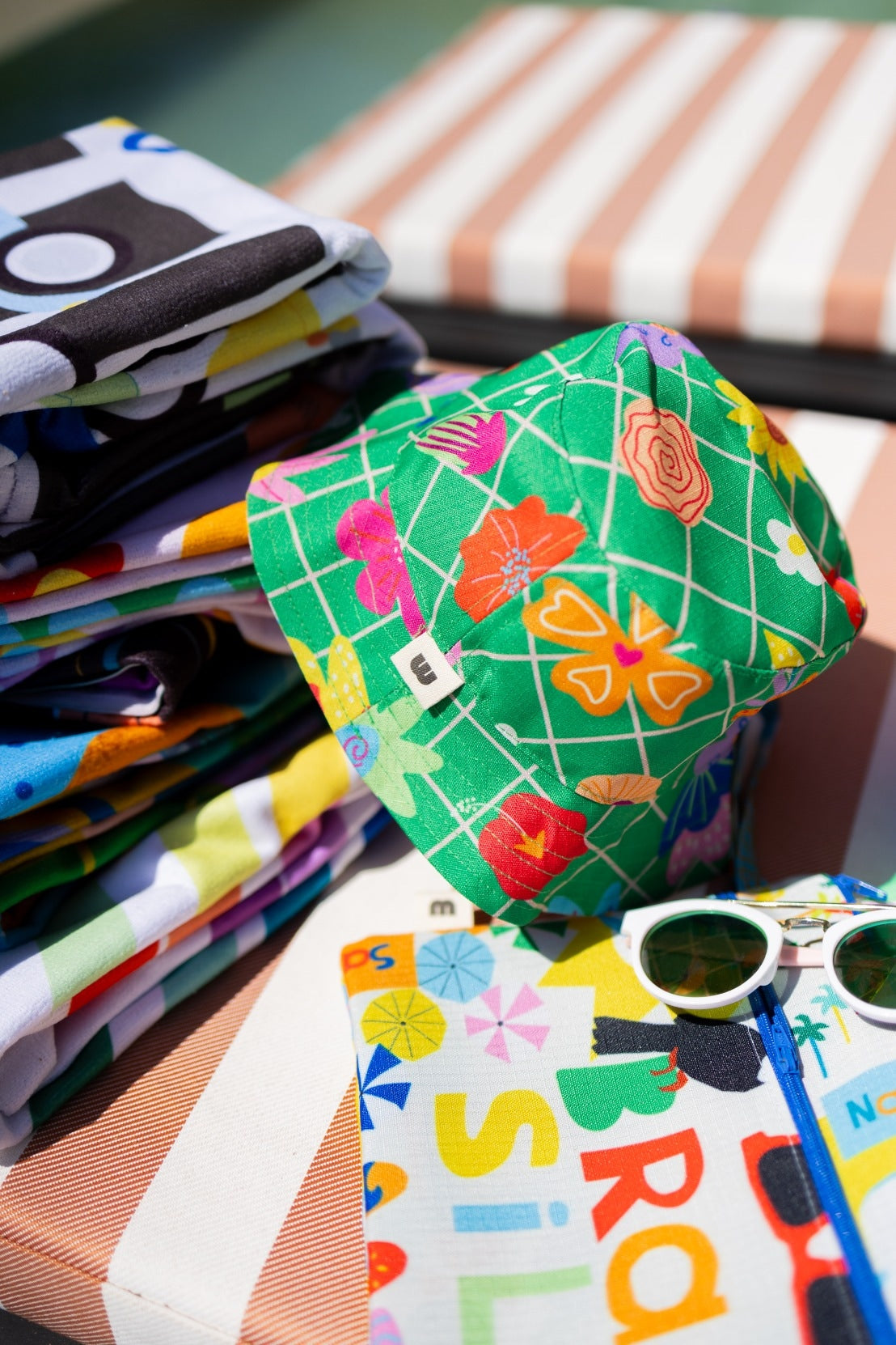 Chapéu bucket infantil, com estampa exclusiva Mooui é confeccionado em tecido impermeável e dupla face, de um lado a estampa Jardim da Vovó Verde e do outro a estampa Happy Flowers. Modelo estiloso e perfeito para proteger a cabeça das crianças do sol forte, além de deixá-las ainda mais charmosas e pode ser usado em várias ocasiões deixando qualquer look encantador.