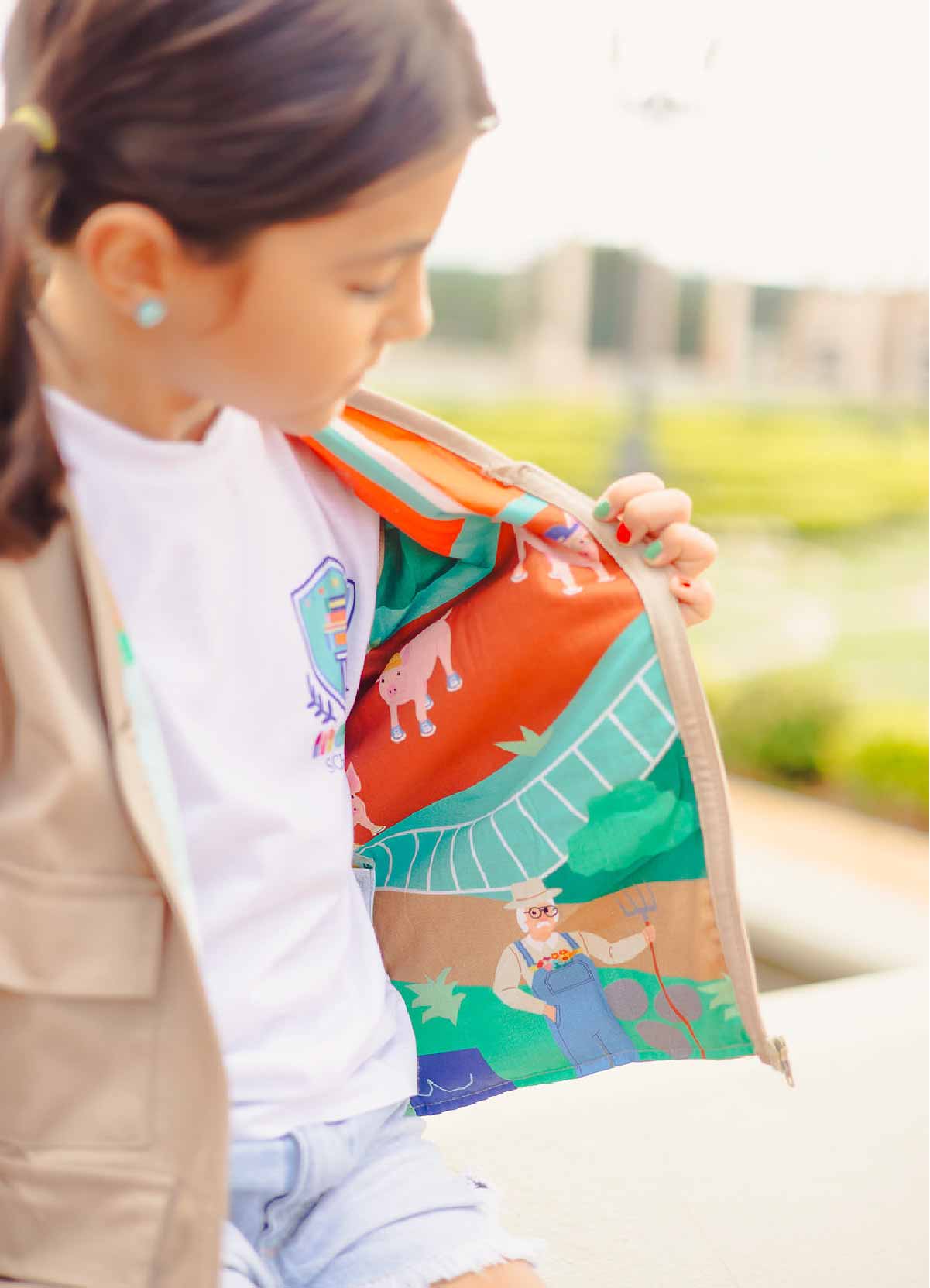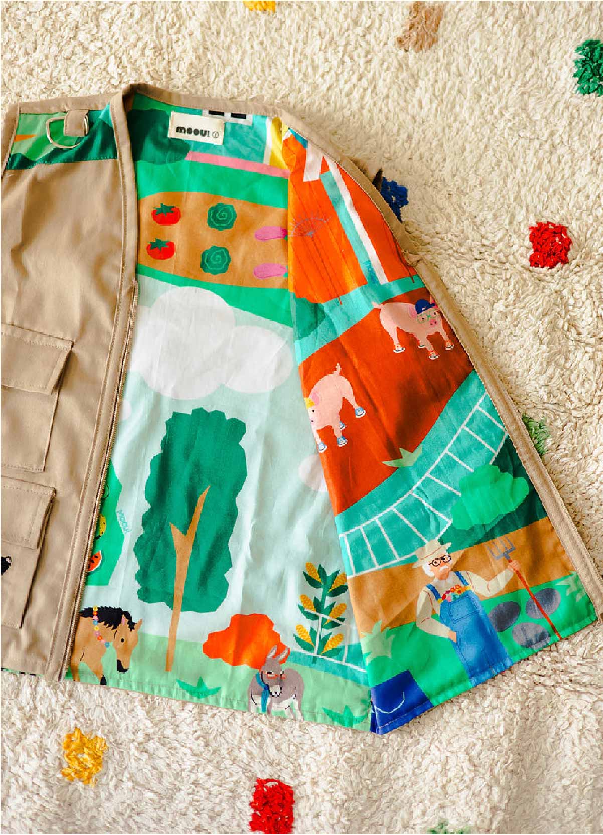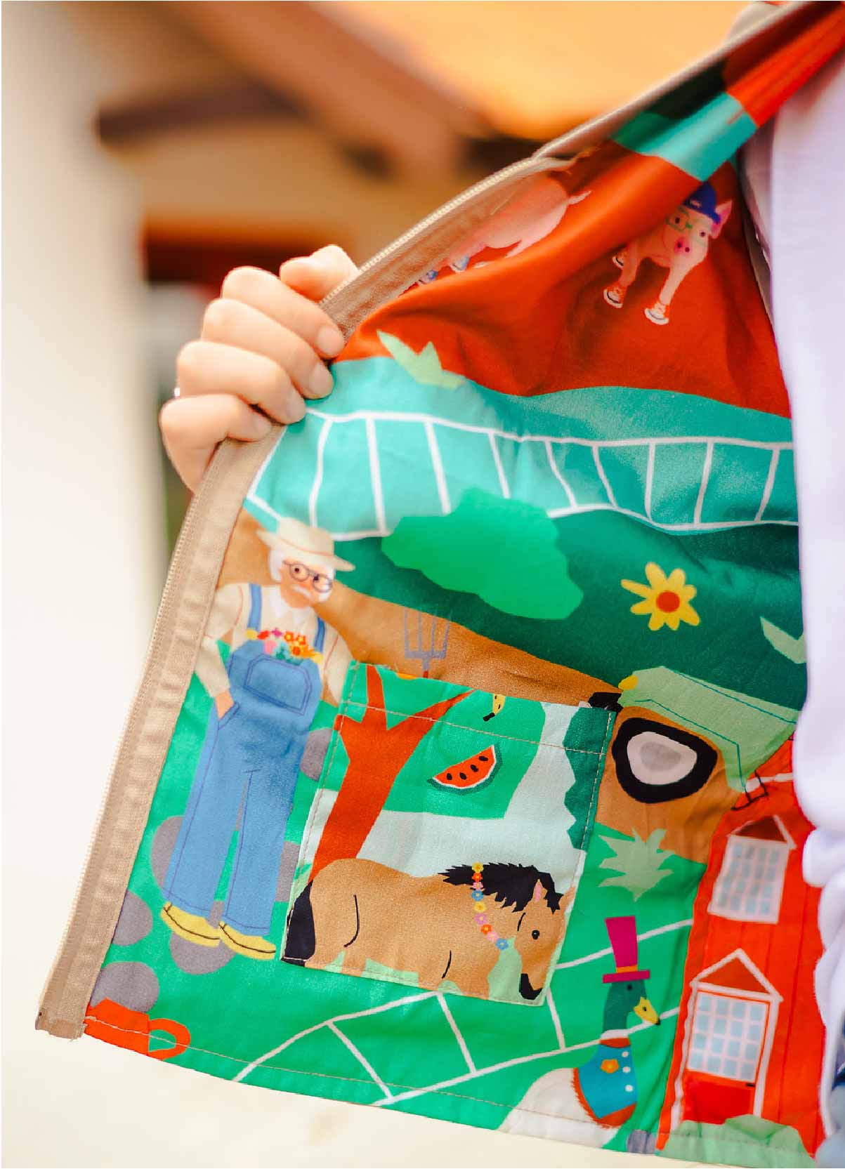 O Colete Infantil Fazendinha é daqueles itens indispensáveis para uma criança, perfeito para completar o look e brincar de descobrir o mundo por aí. Feito em tecido 100% algodão e forro com a estampado.