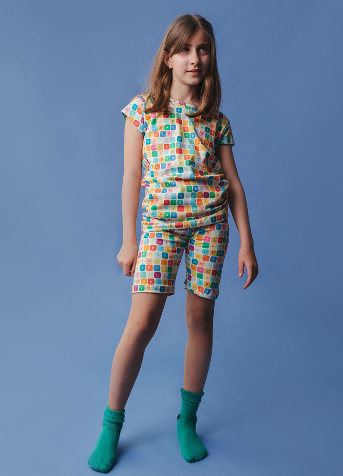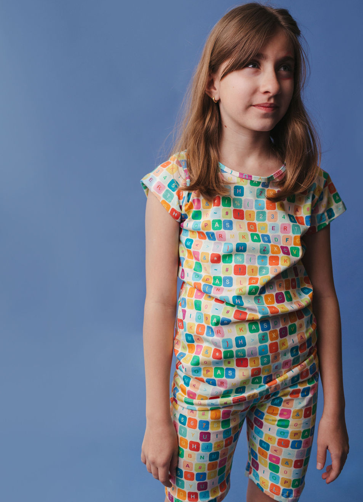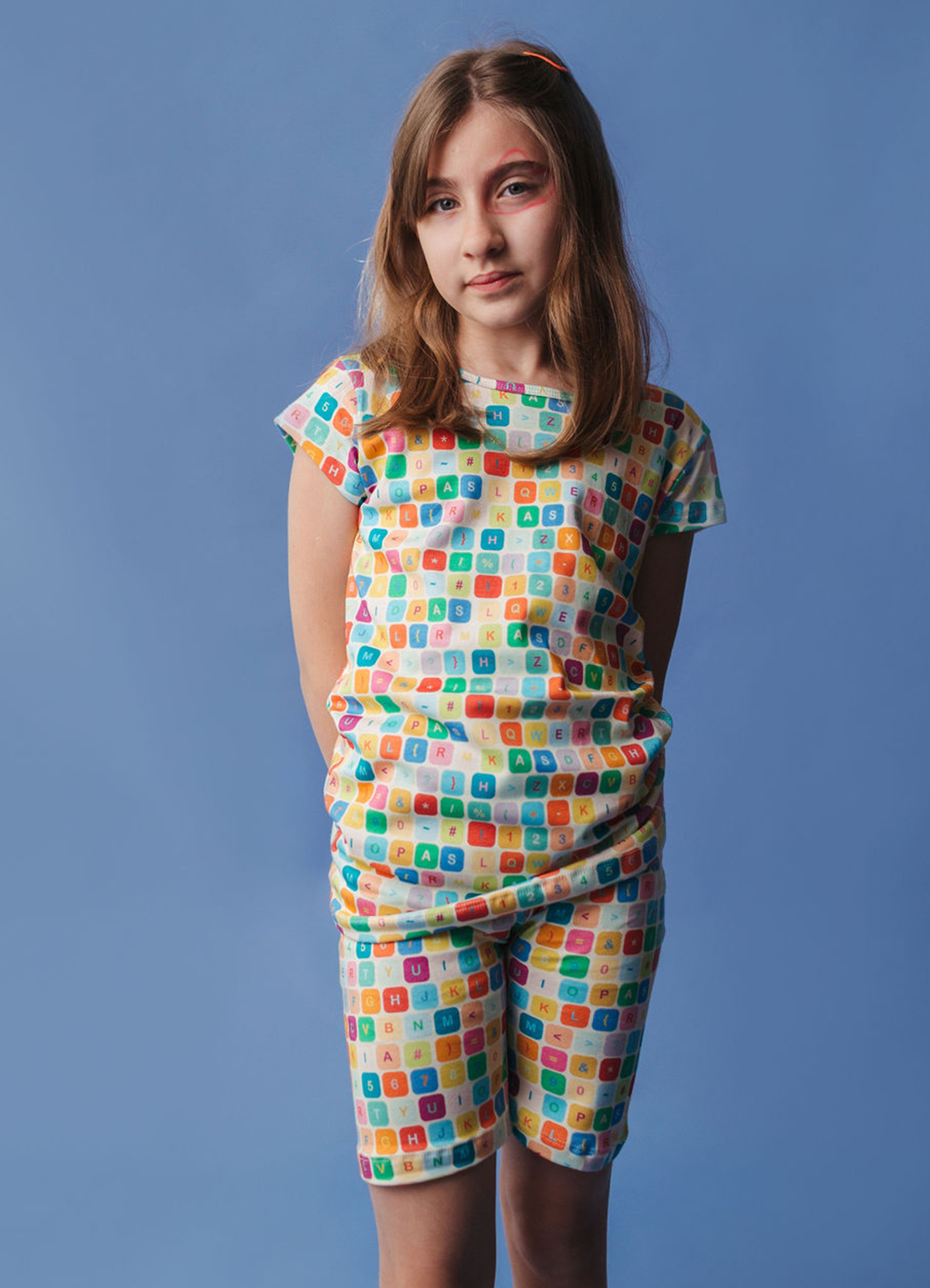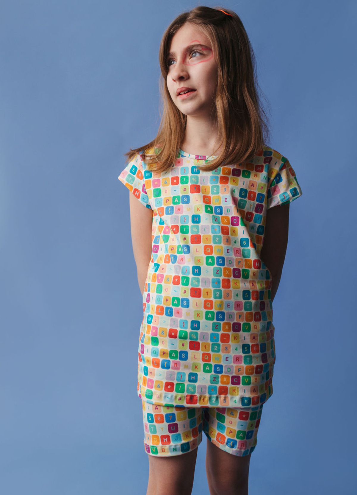 O Conjunto Pijama Curto Máquina de Escrever é a combinação perfeita para uma boa noite de sono, é divertido, graças ao toque especial da estampa exclusiva MOOUI, e extremamente confortável pela qualidade do tecido. Confeccionado em malha suedine de algodão, o kit short infantil + camiseta manga curta é pura maciez, para trazer muito conforto e liberdade na hora de dormir.