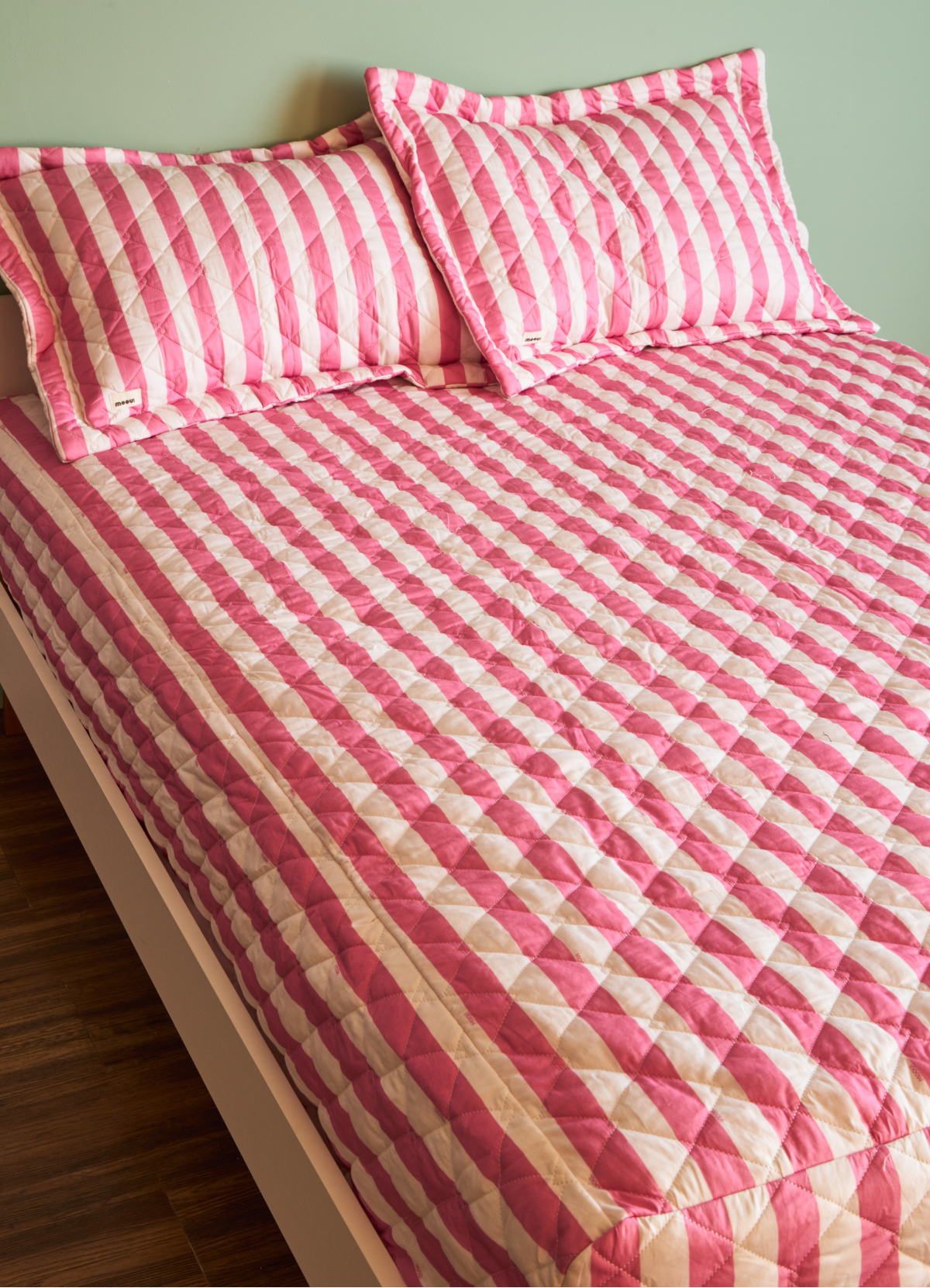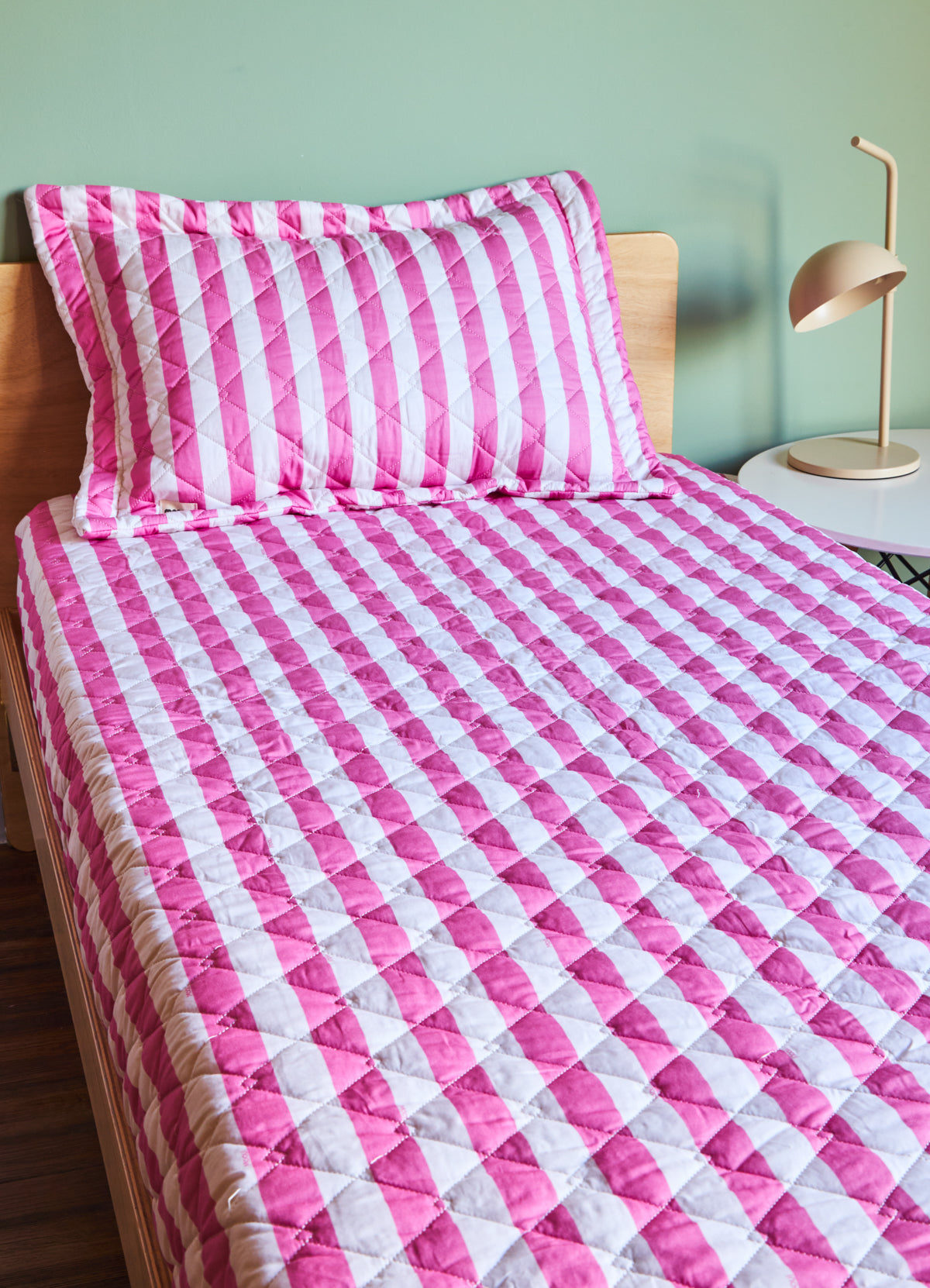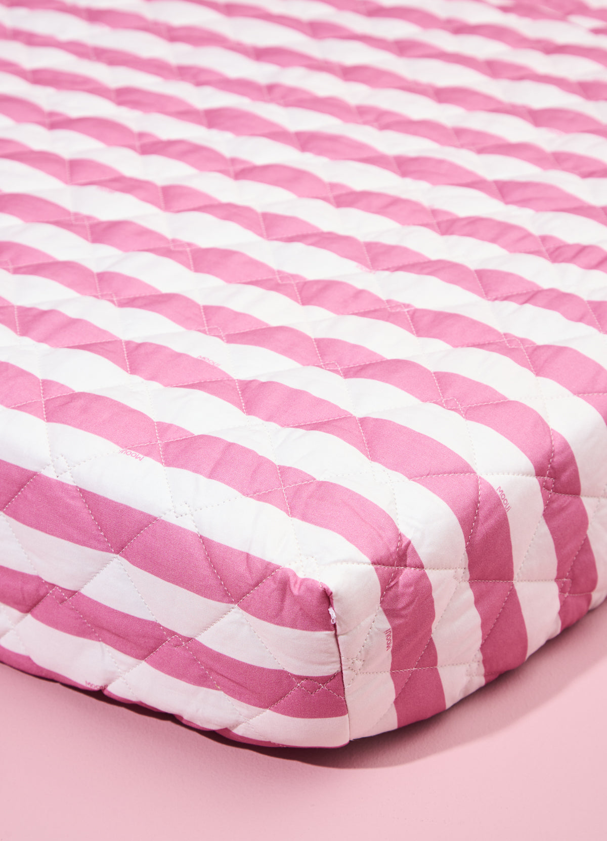 O Jogo de Colcha Elástico Infantil Listrado Azaleia da MOOUI combina praticidade e beleza para o quarto das crianças. A colcha com elástico mantém-se perfeitamente ajustada ao colchão, evitando que se desloque durante o sono agitado dos pequenos.