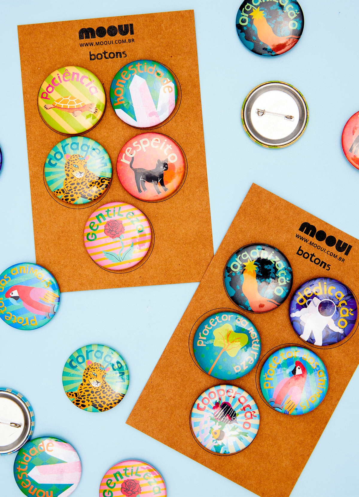 O Kit Botons Habilidades foi feito para personalizar os itens infantis. Com uma seleção de cinco desenhos especiais, os bottons tem impressão de alta qualidade e fixação em alfinete. Perfeitos para serem usados em mochilas, bolsas, jaquetas, coletes e onde sua imaginação te levar.