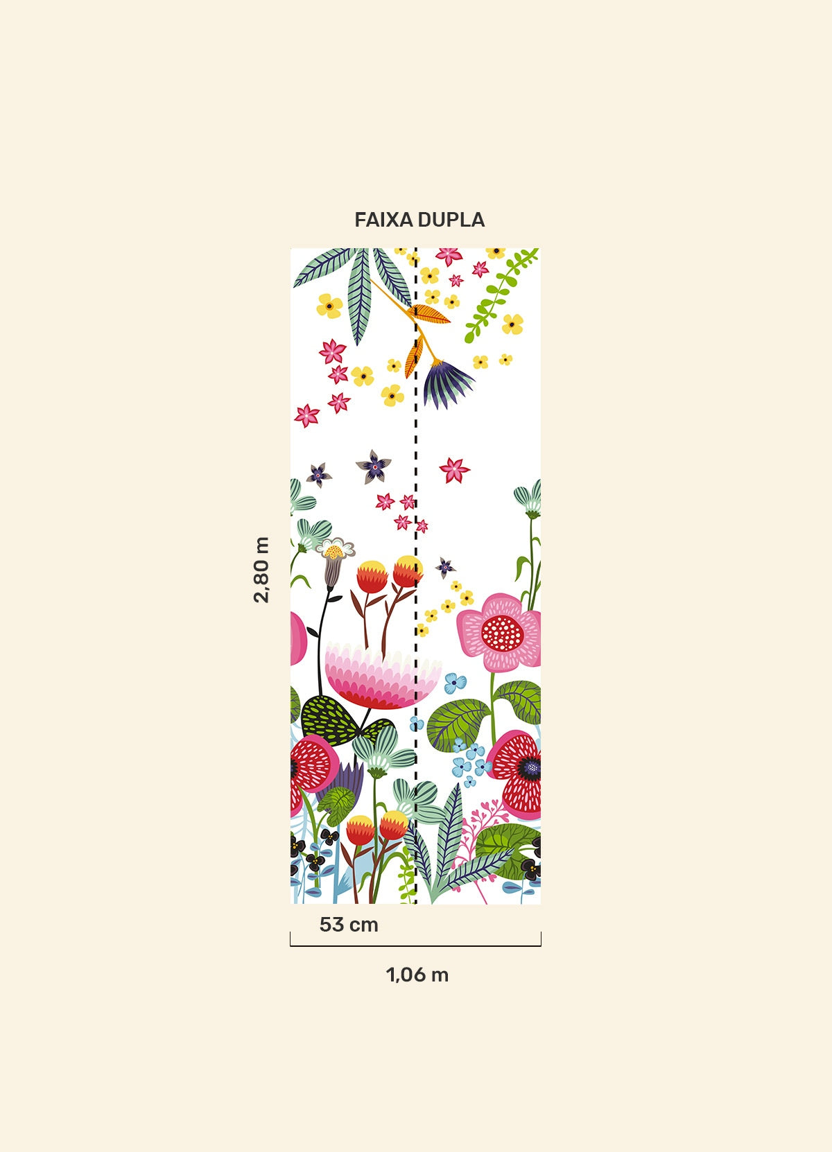 O Papel de Parede Jardim Dia é como um portal da magia: permite que as cores, aventuras e o carinho invadam o quartinho infantil com alegria e encanto. Além de ser um item que transforma a decoração, nosso Papel de Parede infantil é de base vinílica e impressão de alta definição, para que você tenha um item de muita qualidade para decorar o quarto infantil. O acabamento é fosco e a textura suave, substituindo pinturas com tinta de forma mais prática e durável. E a junção das faixas não é sobreposta, mas alinhada lado a lado. Consulte a disponibilidade de estoque a pronta entrega.
