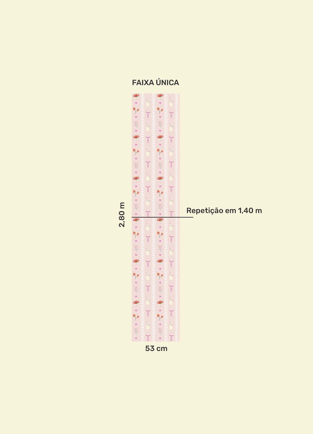 O Papel de Parede Flores E Coelhinhos é como um portal da magia: permite que as cores, aventuras e o carinho invadam o quartinho infantil com alegria e encanto. Além de ser um item que transforma a decoração, nosso Papel de Parede infantil é de base vinílica e impressão de alta definição, para que você tenha um item de muita qualidade para decorar o quarto infantil. O acabamento é fosco e a textura suave, substituindo pinturas com tinta de forma mais prática e durável. E a junção das faixas não é sobreposta, mas alinhada lado a lado. Consulte a disponibilidade de estoque a pronta entrega.
