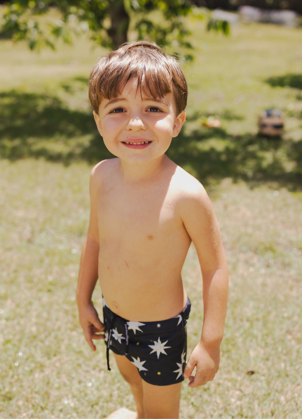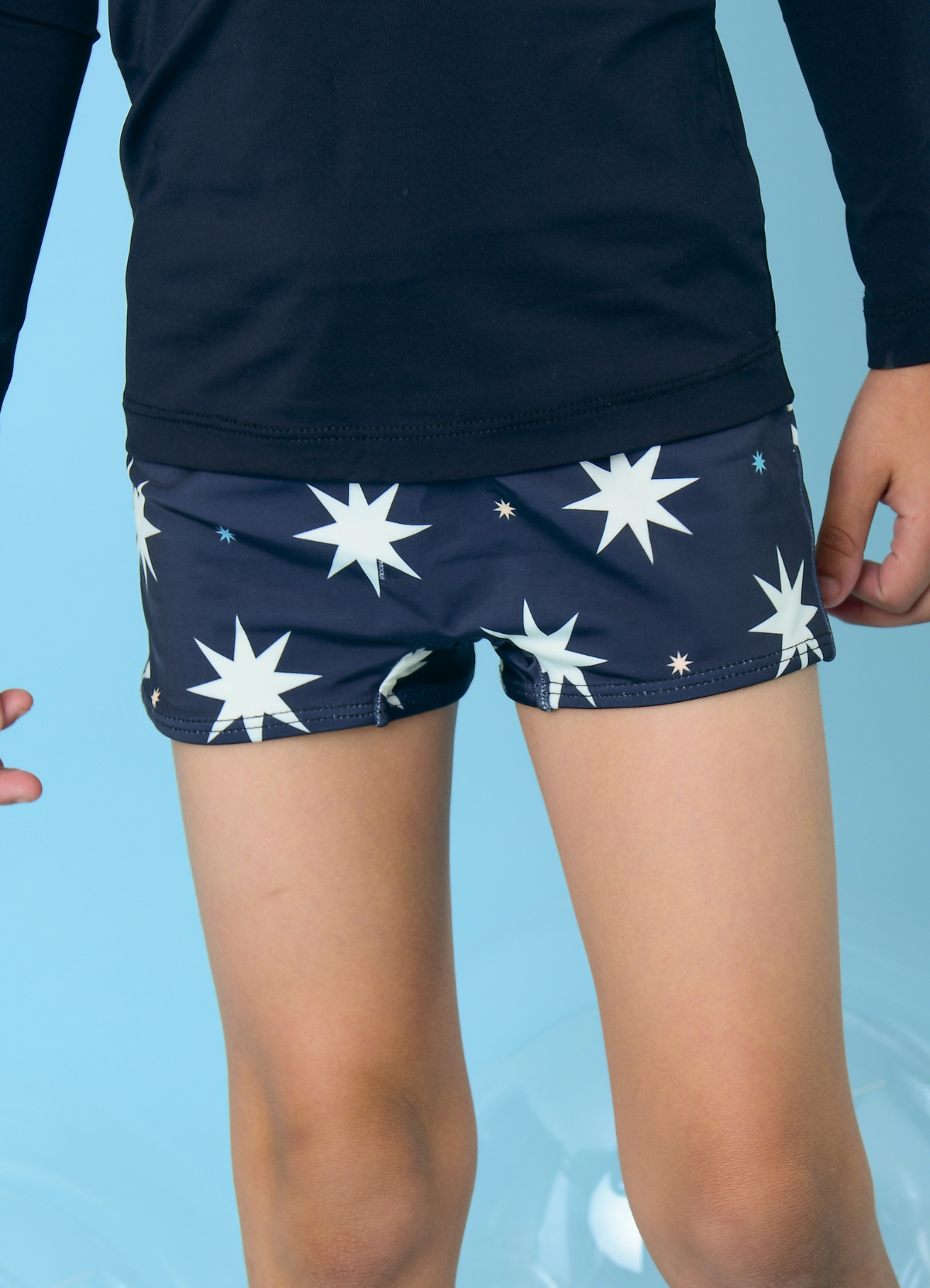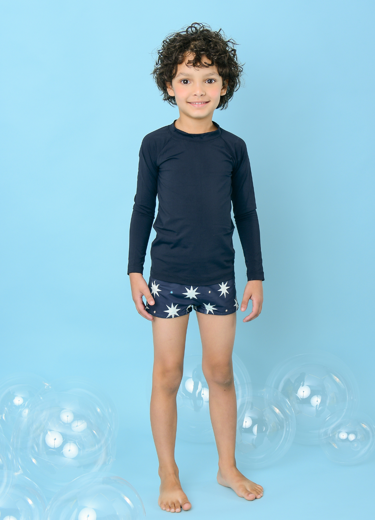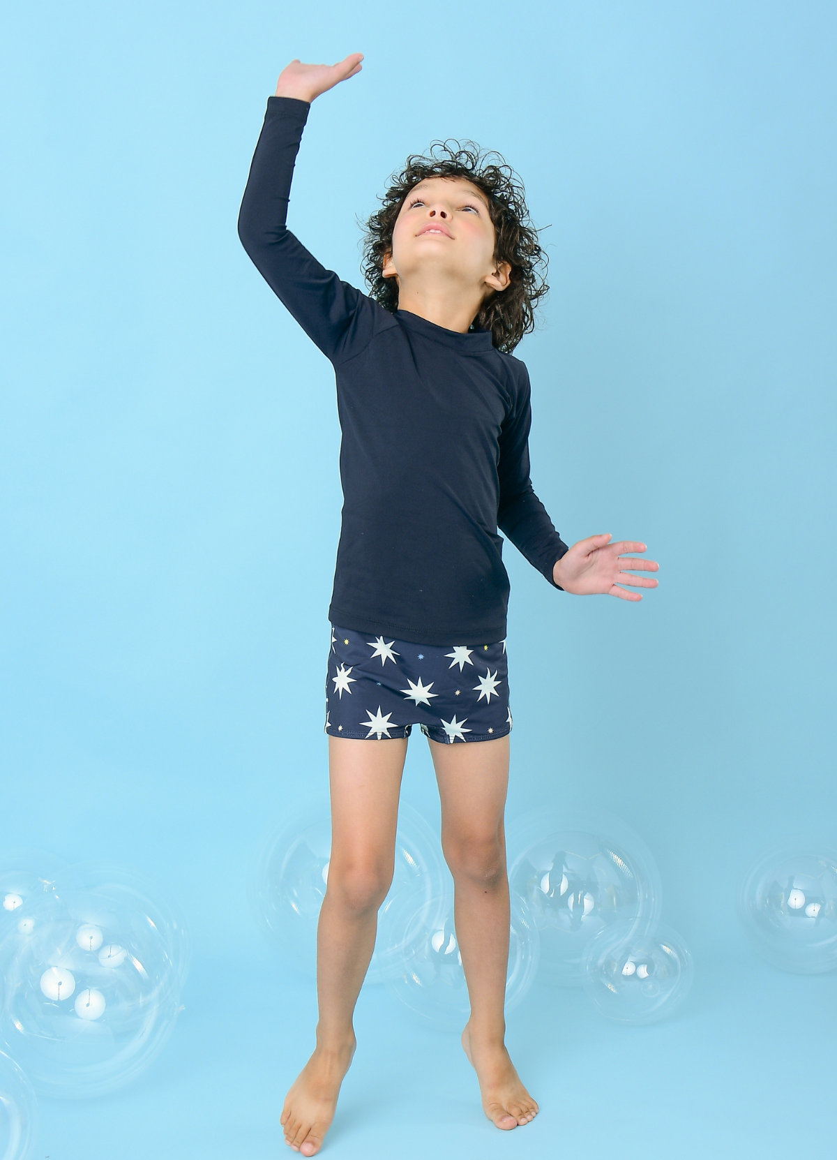 A Sunga Boxer Noite de Luar MOOUI combina estilo e conforto para os meninos aproveitarem os dias de sol. Com tecido tecnológico de secagem rápida, proteção UV FPS50+ e forro em poliamida, garante segurança e praticidade. A estampa exclusiva Noite de Luar adiciona charme moderno ao visual.