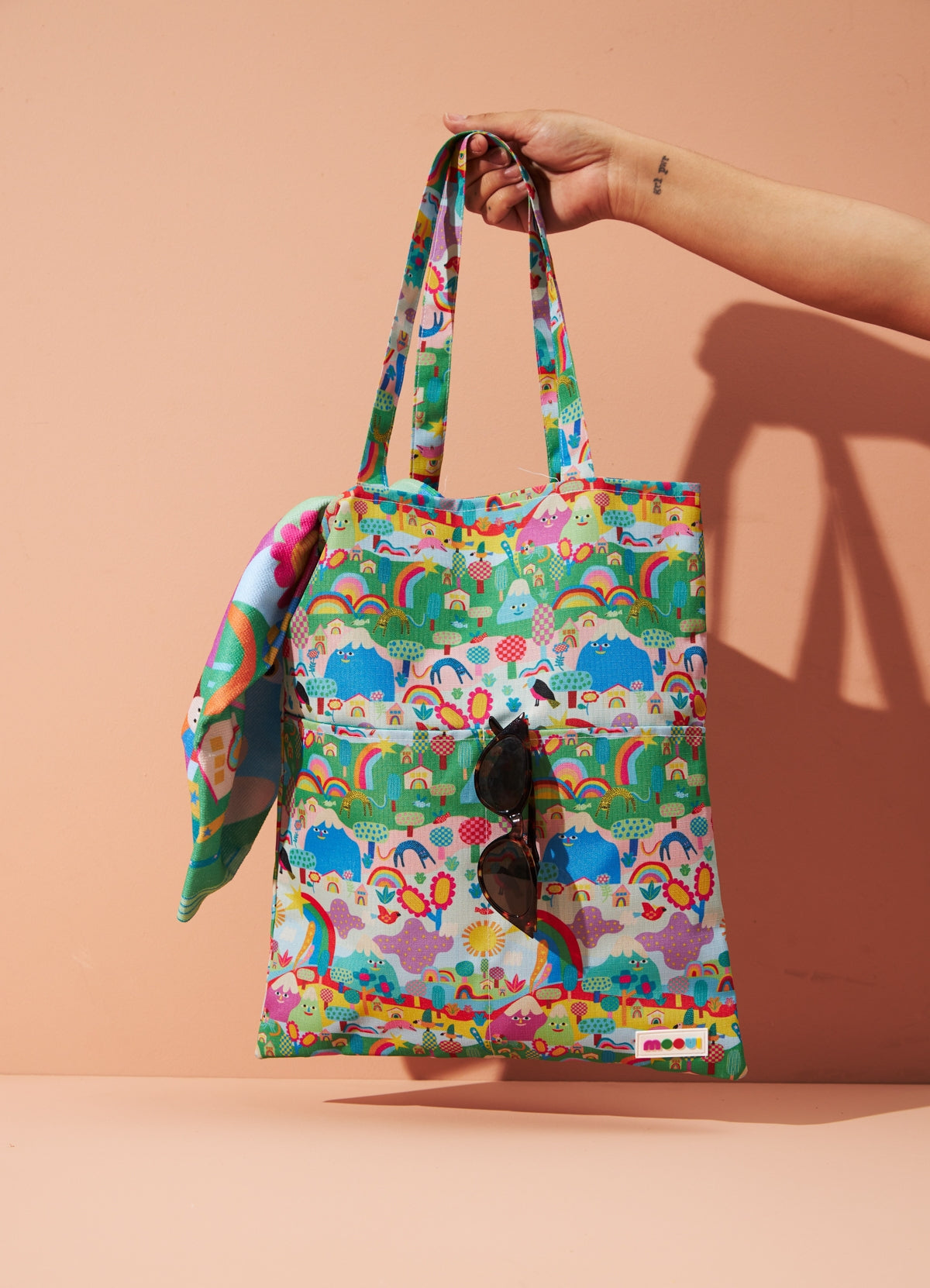 A Tote Bag Mundo Mágico tem estampa exclusiva Mooui e foi desenvolvida para você ter a liberdade de carregar seus pertences com conforto, elegância e segurança. Feita em tecido impermeável e resistente, ela possui bolsos externos para colocarem o que quiserem, desde conchinhas, chinelos, protetores, óculos ou outros pertences que precisam estar disponíveis mais rapidamente. E grande espaço para guardar tudo o que precisa na hora de curtir a piscina ou a praia, com alças maiores que garantem o conforto para carregar nos ombros ou mãos. Desenvolvida para as crianças e para os adultos que gostam de carregar suas coisas em uma bolsa espaçosa cheia de charme e alegria.